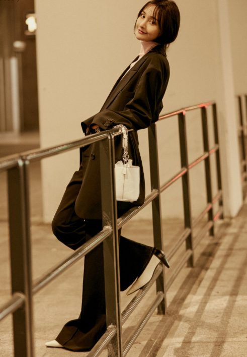 9月28日郑爽亮相巴黎时装周,一身黑色西装,内搭粉色高领,俏皮短发,使得原本酷酷她也有一份小女人的娇俏感。
