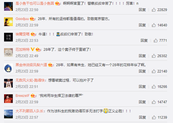 2月23日晚22点49分,@平安南京发布警方通报,南京医学院林姓在校女学生被残忍杀害案件,时隔28年后告破。