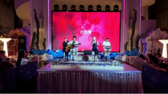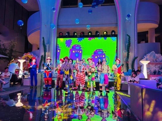 周年庆当天,“小丑嘉年华”贯穿始终,色彩斑斓的小丑们携气球与魔术全场巡游互动,与孩子们击掌嬉戏,掀起阵阵欢笑。与此同时,萨克斯的深沉与小提琴的灵动交织演奏,为热闹的庆典注入优雅韵律,让游客在动静之间尽享视听盛宴。