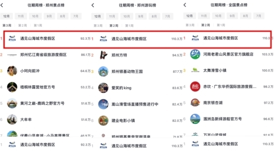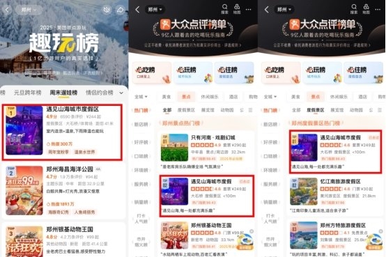 一年来,遇见山海城市度假区凭借卓越体验屡获认可,长期稳居抖音郑州景点榜周榜Top1,多次登顶抖音郑州游玩团购带货周榜Top1,曾跻身抖音全国游玩景区周榜Top1,并在美团、大众点评等平台郑州景点游玩的核心榜单(趣玩榜、收藏榜、成交榜)持续占据TOP2。