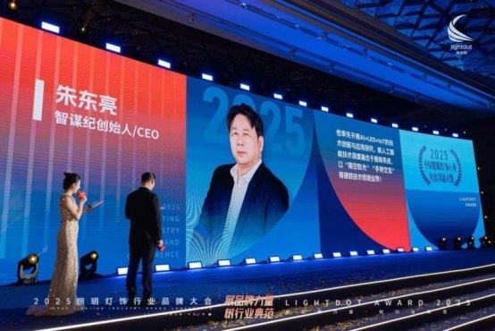 智谋纪AI照明凭借创新性的品牌影响力和AI技术底蕴,连续两年获得行业细分领域“AI照明领军品牌” 奖项,智谋纪创始人朱东亮先生获评“2025中国照明灯饰行业年度创新人物”。